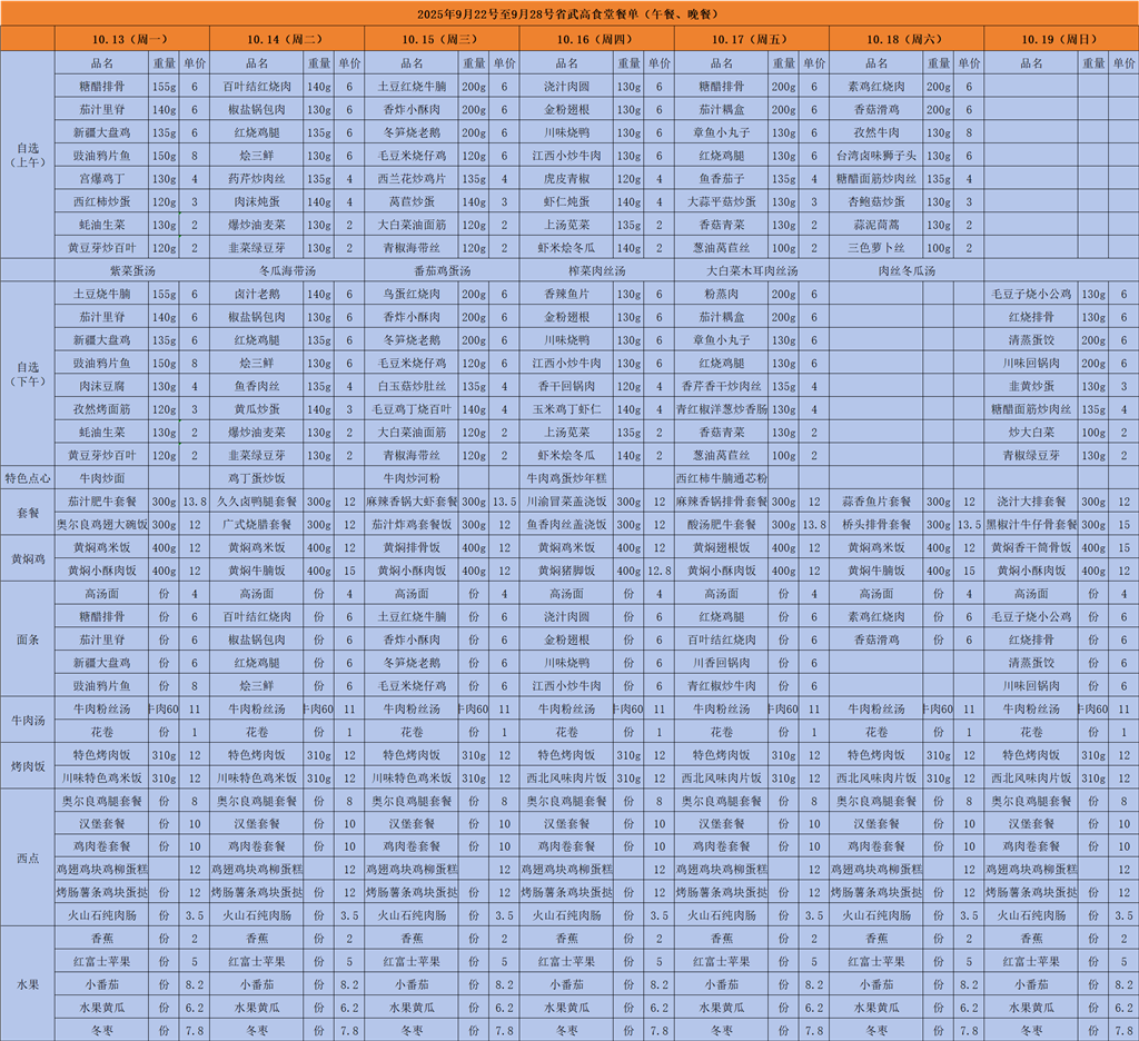 2025-2026学年度第一学期第7周食谱(10月13日-10月19日)