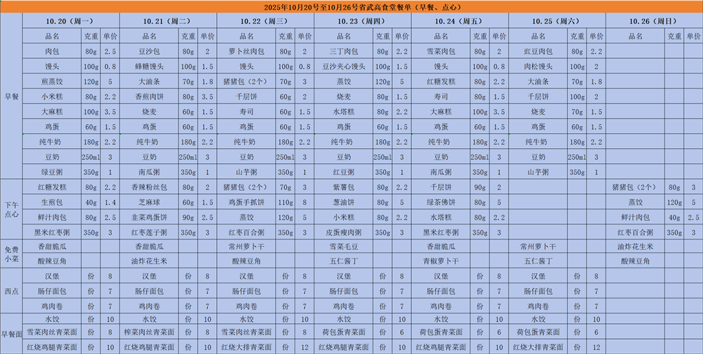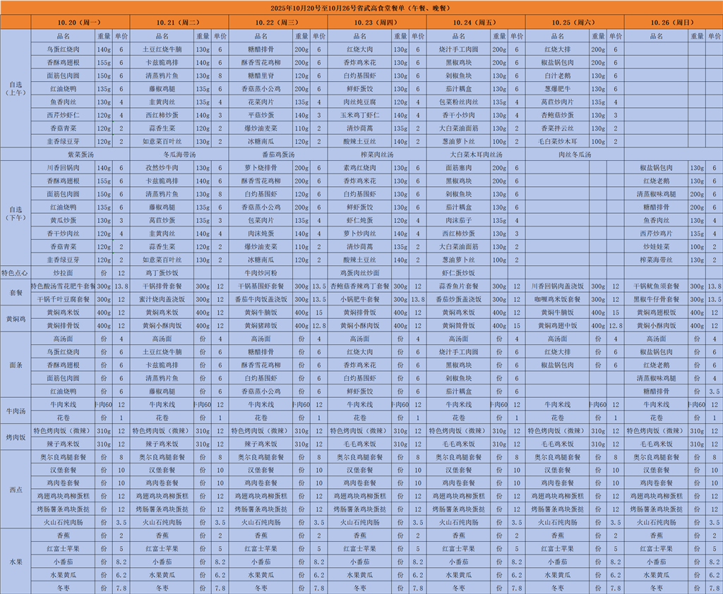 2025-2026学年度第一学期第8周食谱(10月20日-10月26日)