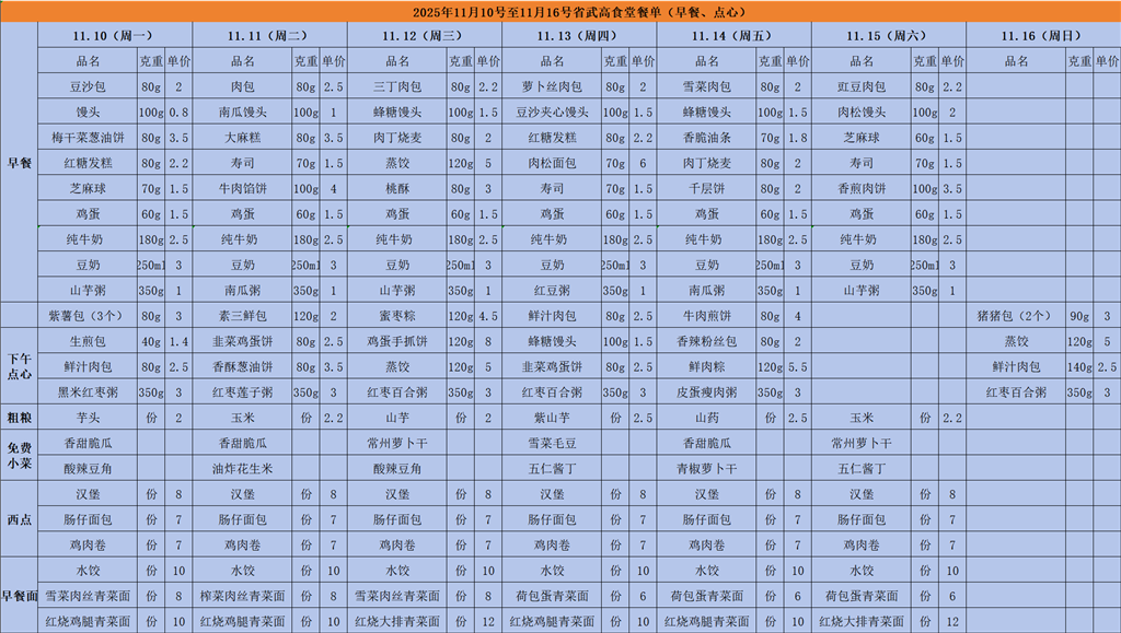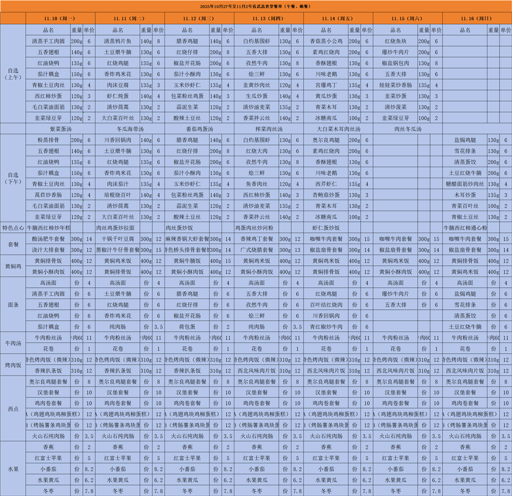 2025-2026学年度第一学期第11周食谱(11月10日-11月16日)