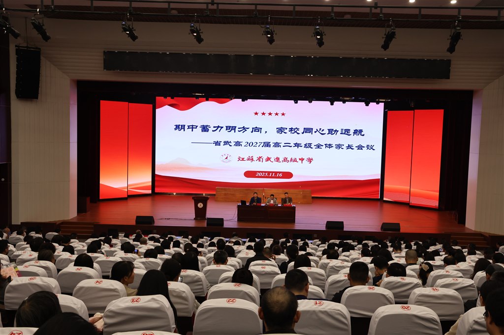 为搭建家校沟通桥梁,凝聚育人合力,助力高二学子在关键成长阶段稳步前行。2025年11月16日,江苏省武进高级中学2027届高二年级全体家长会议在学校报告厅顺利举行。高二年级分管校长马骏、课程发展中心副主任潘政波等年级管理小组成员出席会议,会议由年级主任陆田森主持。