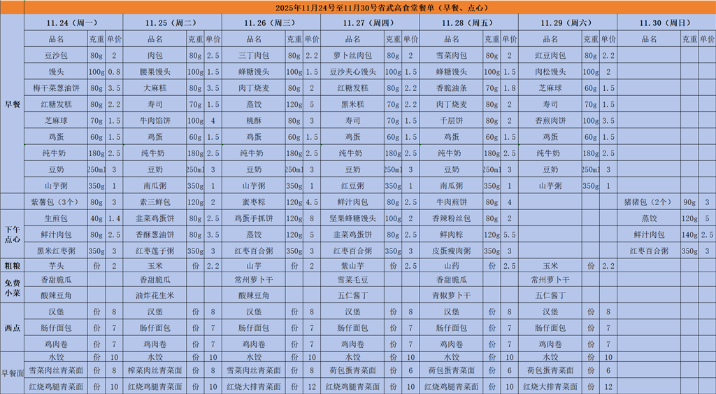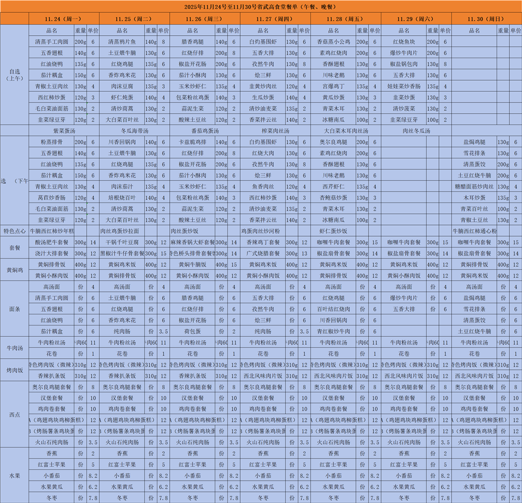 2025-2026学年度第一学期第13周食谱(11月14日-11月30日)