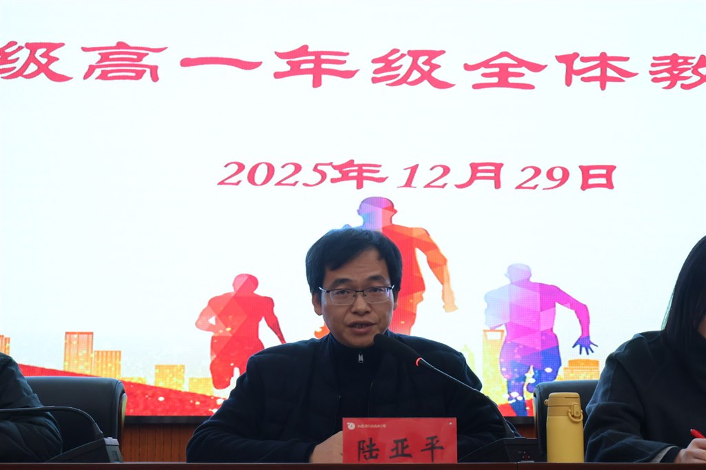 随后,年级分管副校长陆亚平发表讲话。他充分肯定了高一年级教师前期的辛勤付出,强调期末复习阶段要聚焦核心考点,注重分层教学,关注学科与班级间的差距。鼓励老师们向榜样与优秀学习并对青年教师的工作进行了细致的指导。同时,他鼓励全体教师凝心聚力、协同作战,以高效的教学策略和饱满的工作热情,全力冲刺期末,确保教学质量稳步提升。