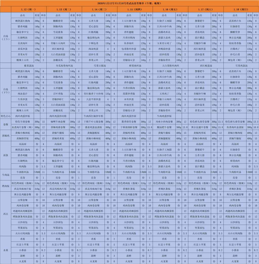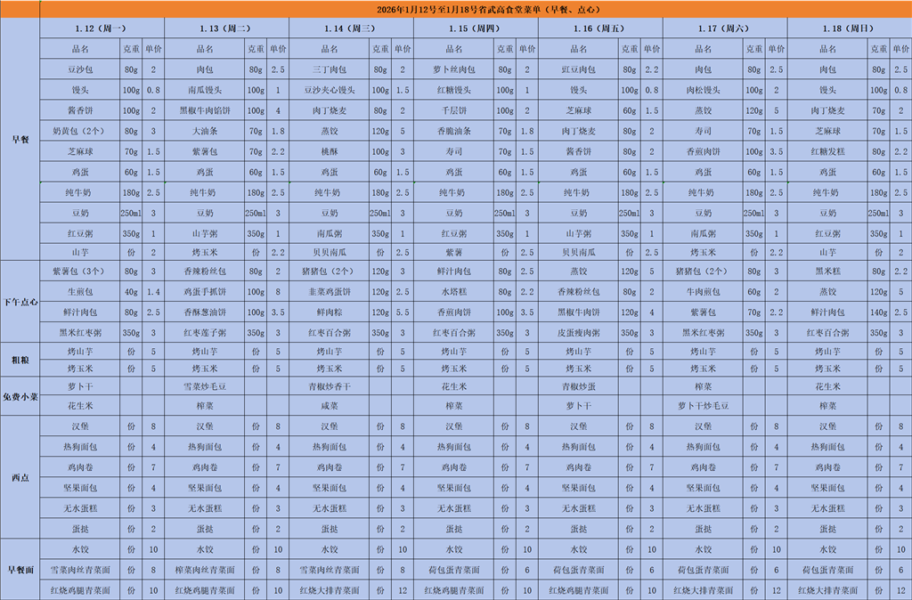 2025-2026学年度第一学期第20周食谱(1月12日-1月18日)