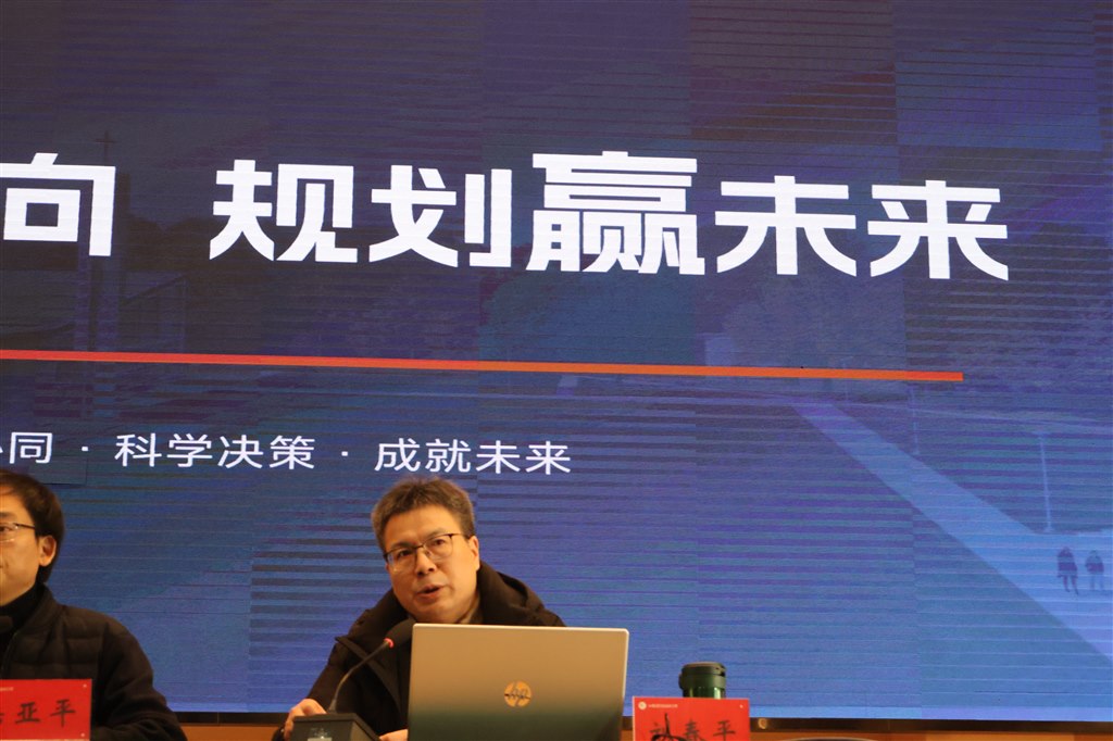 会议伊始,课程发展中心主任刘春平开展了专业细致的选科指导。他围绕江苏省“3+1+2”高考模式核心要求,精准解读各科计分规则与高校录取逻辑,结合2025年全省高考招录数据,深入分析物理类、历史类的报考趋势及学校对应分班规划。同时,他以多所省内外院校专业选考要求为实例,针对性给出实用选科组合建议,细致提醒大家规避盲目跟风、忽视赋分等常见误区,着重强调需结合自身学科优势、目标专业需求科学抉择,明确总分仍是新高考竞争中的核心竞争力。